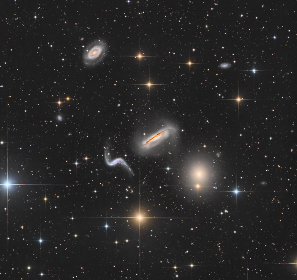 拍摄地点:湖北黄冈市楚天星辰阁 作品简述:Arp 316 属于星系群类别。该星系群包括 NGC 3185,也称为 Hickson 44。Hickson 44(Arp 316)是狮子座星系群,包括 NGC 3185、NGC 3187、NGC 3190和 NGC 3193。这张有趣的图片中看到的四个主要星系就是其中一个星系群,即希克森 44,距离狮子座约 1 亿光年。