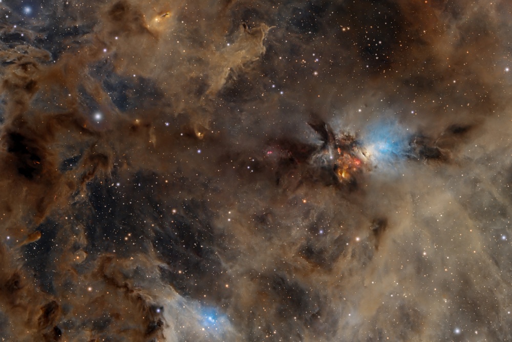 "The photographer did a very tasteful job showing off all the different kinds of objects in this image: emission, reflection and dark nebula, and bright and dark dusty regions. The stars also look terrific. The image shows plenty of detail, but is not over-sharpened. "