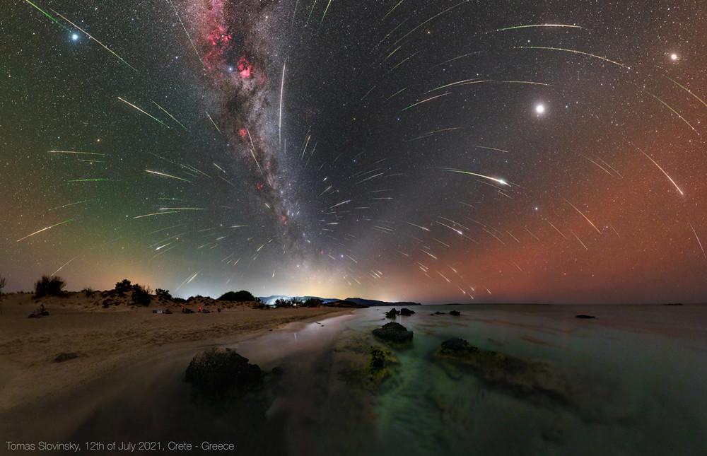 Story: Our planet disposes of many beautiful places with lagoons and beaches. Where we, people, like to spend our vacations. No doubt, it's really relaxing and nice to listening to the waves and laying on the hot sand. But what if this experience would be connected with observing a meteor shower? Definitely, that sounds even more epic! This is what I felt like this August. I with my friends Petr Horalek and Josef Kujal have captured meteors from the Perseids with such a nice atmosphere. Finally, up to 232 meteors were captured during 5 clear nights around its maximum. I registered them into the panoramic background image from the same beach. As the another "dust" meaning You can see a zodiacal light across the sky and gegenschein between Jupiter and Saturn. A consequence of interplanetary dust reflecting the sunlight.