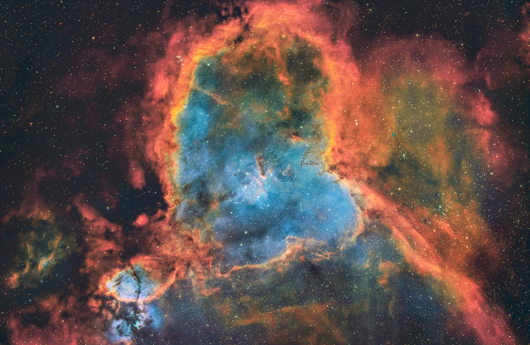 - Finally, in the latest version, the Heart Nebula in SHO, combining all the channels from the two shots.