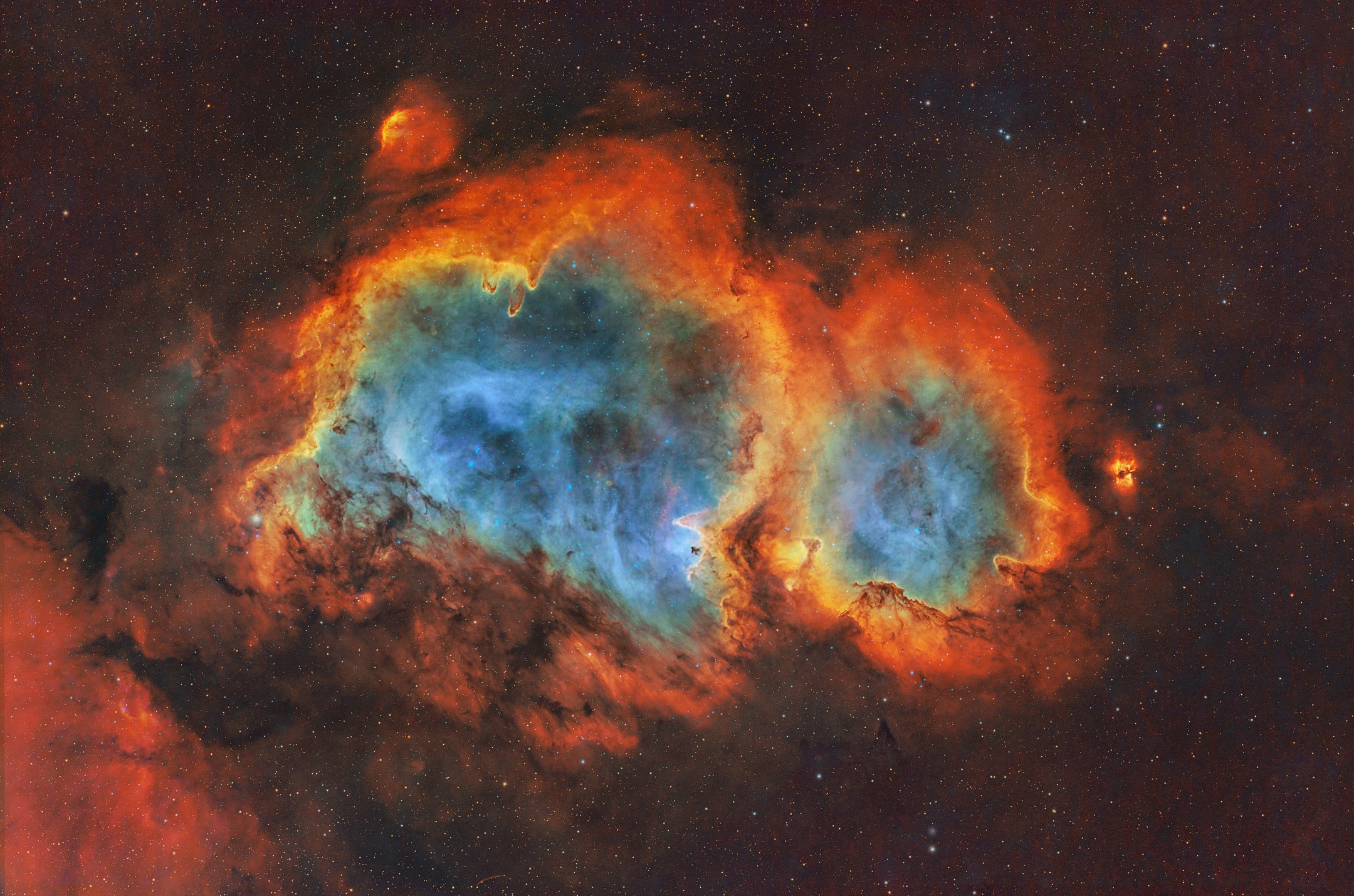 Located about 6,000 light years from Earth, the Soul Nebula is an emission nebula that forms a vast star-forming complex that is part of the Perseus spiral arm of our galaxy, the Milky Way. The Soul Nebula is also known as the Embryo Nebula, IC 1848 or Westerhout 5. The Perseus Arm is further from the centre of the Milky Way than the arm containing our Sun. The Soul Nebula covers an area of sky equivalent to four full moons.